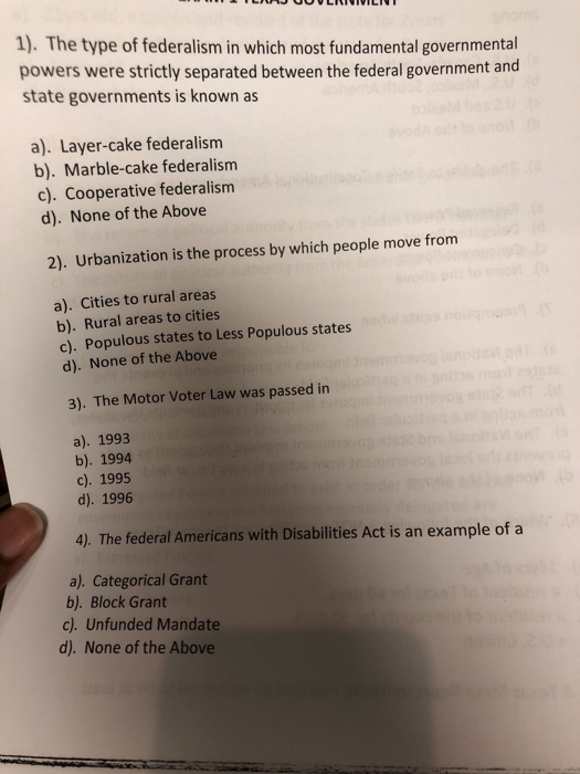 Solved 1 The Type Of Federalism In Which Most Fundament Chegg Com